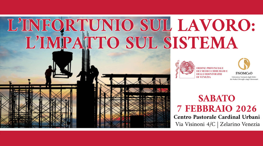 Il convegno L'infortunio sul lavoro: l'impatto sul sistema è in programma al Centro Pastorale Cardinal Urbani di Zelarino il prossimo 7 febbraio 2026. Data la complessità del tema trattato, è nutrita la segreteria scientifica composta da Enza Scarpa, direttrice generale iNAIL Veneto, Alice Bossan, dirigente dell'Ufficio Attività Istituzionali di INAIL Veneto, da Andrea Manzoni, sovrintendente sanitario regionale INAIL Veneto, e, per l'Ordine, da Cristina Mazzarolo, medico legale e componente del direttivo, e dal presidente Giovanni Leoni.