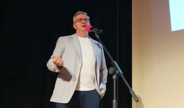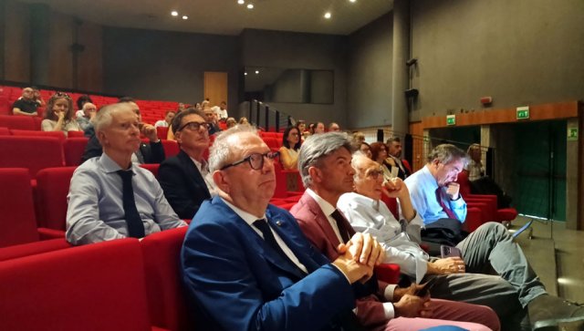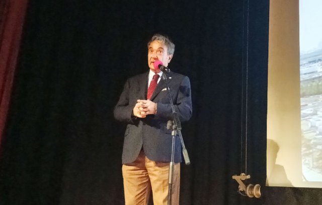 Al microfono Giovanni Leoni, sullo sfondo Gabriele Gasparini