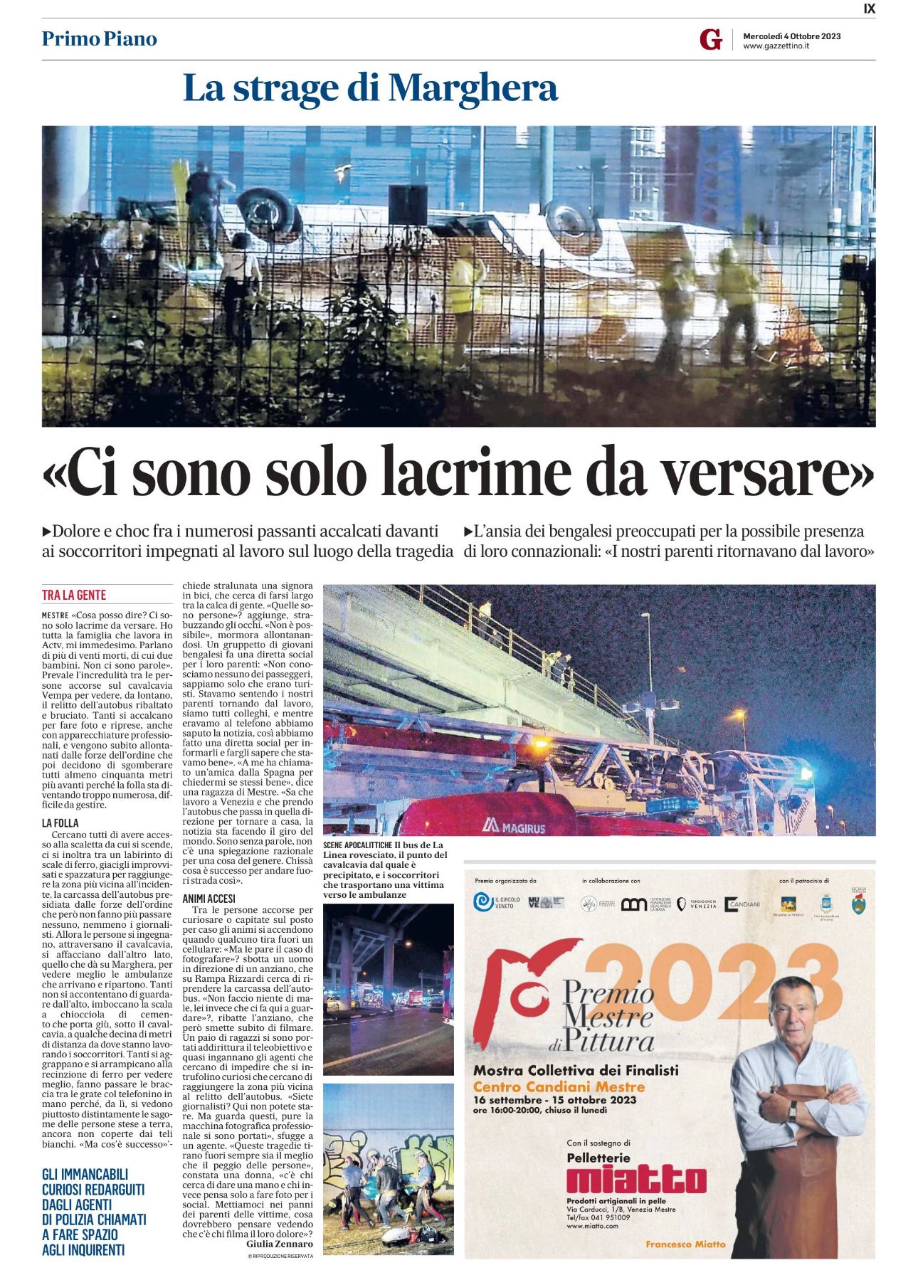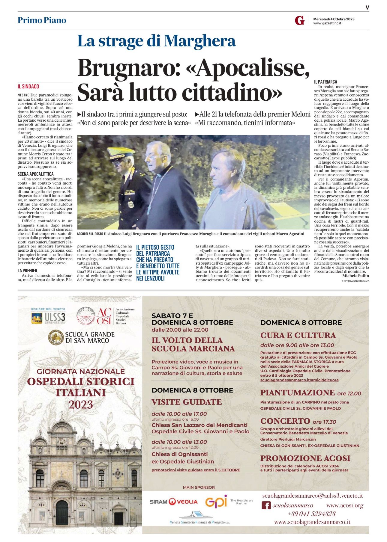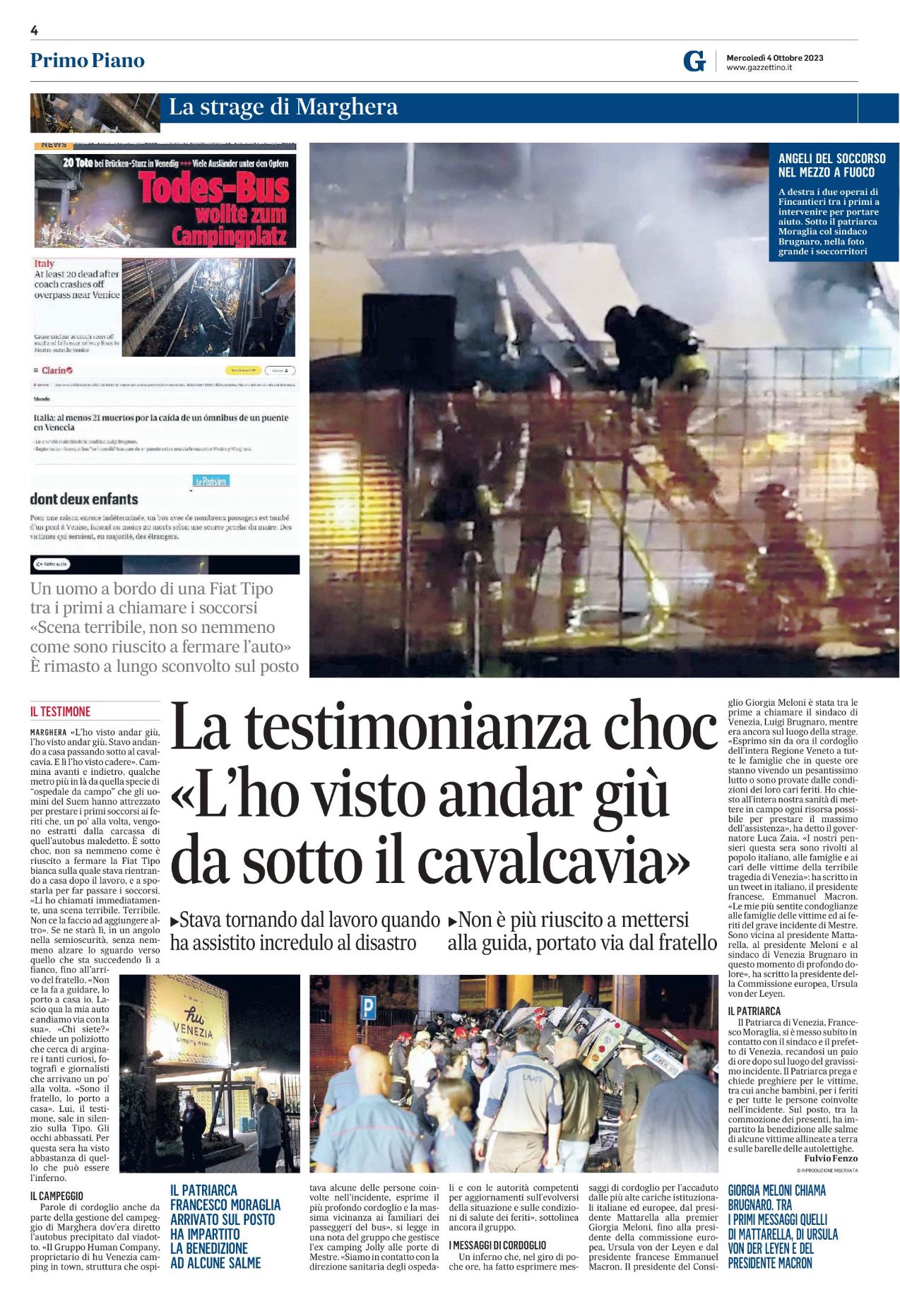 - La Nuova Venezia, Repubblica e quotidiani locali Gruppo Gedi: image PrimaPagina LaNuova04 10 2023(106 KB) , pdf Pagina6 LaNuova04 10 2023(511 KB) , image PrimaPagina Repubblica04 10 2023(424 KB) , pdf Pagina6 GruppoGedi04 10 2023(165 KB) , pdf Pagina7 GruppoGedi04 10 2023(176 KB)