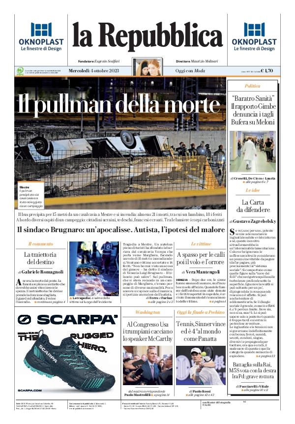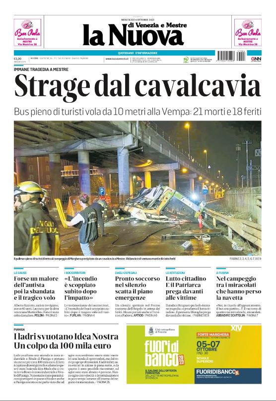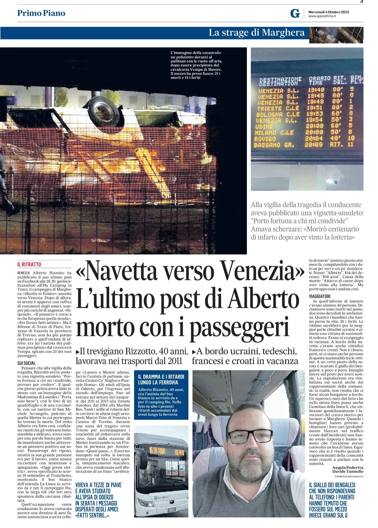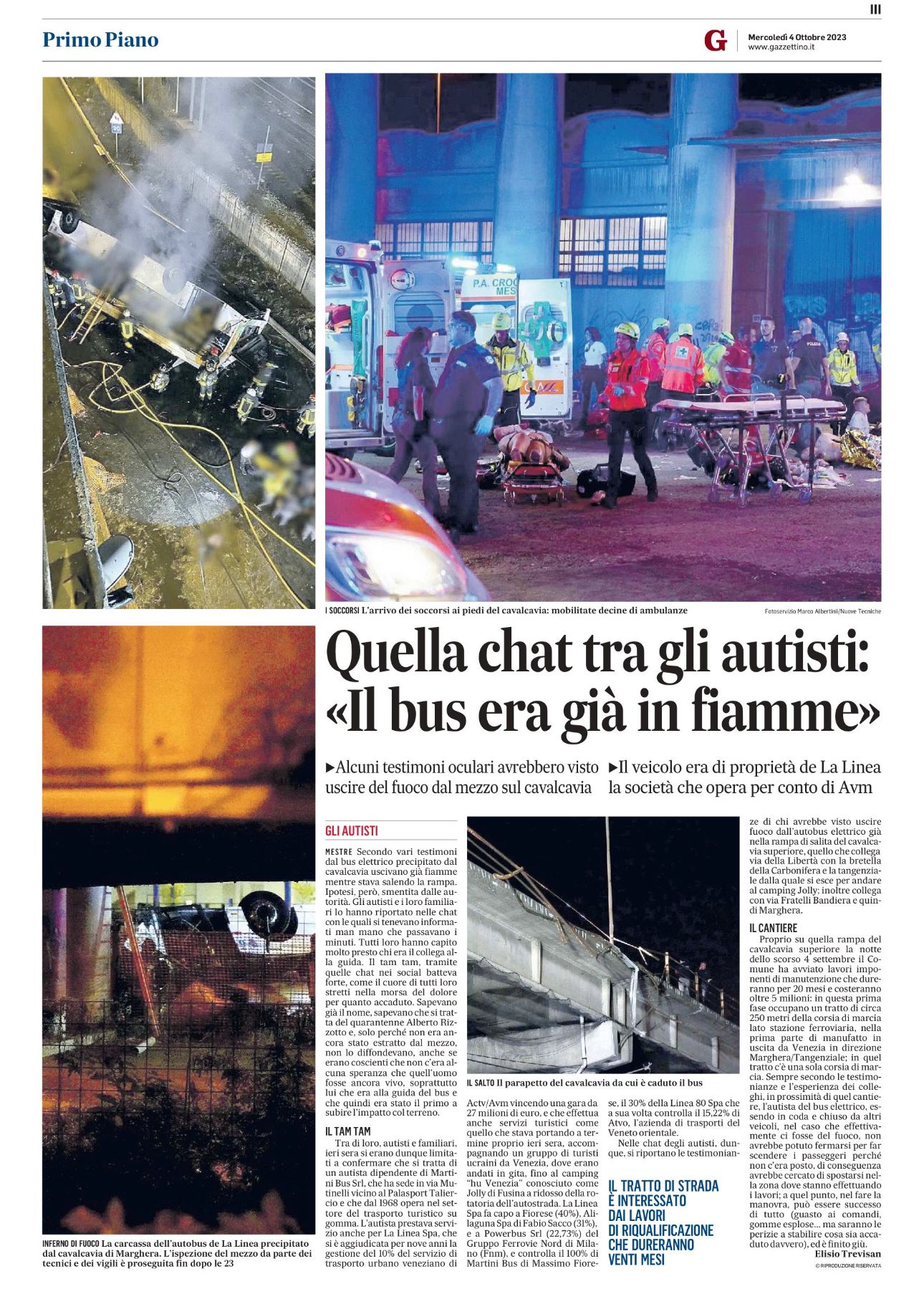 - La Nuova Venezia, Repubblica e quotidiani locali Gruppo Gedi: image PrimaPagina LaNuova04 10 2023(106 KB) , pdf Pagina6 LaNuova04 10 2023(511 KB) , image PrimaPagina Repubblica04 10 2023(424 KB) , pdf Pagina6 GruppoGedi04 10 2023(165 KB) , pdf Pagina7 GruppoGedi04 10 2023(176 KB)