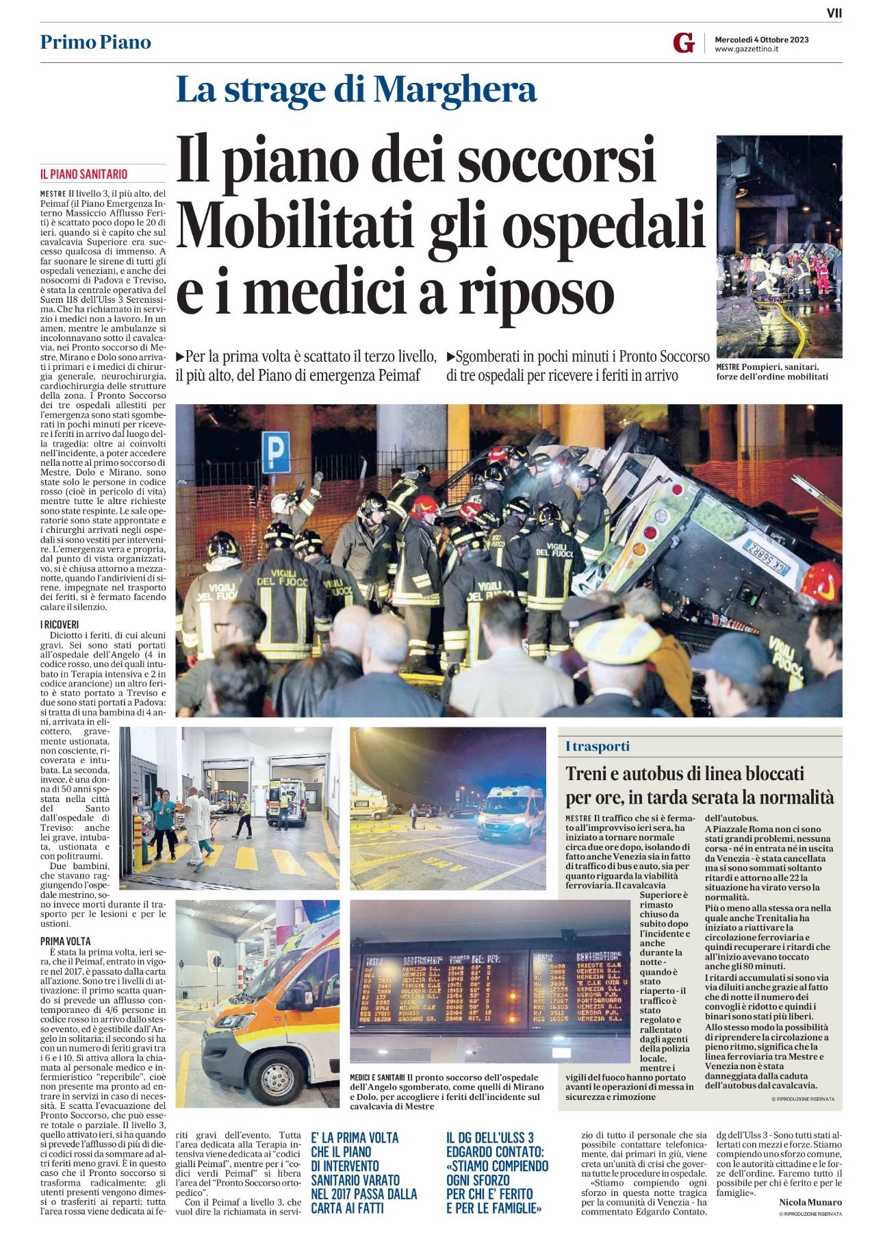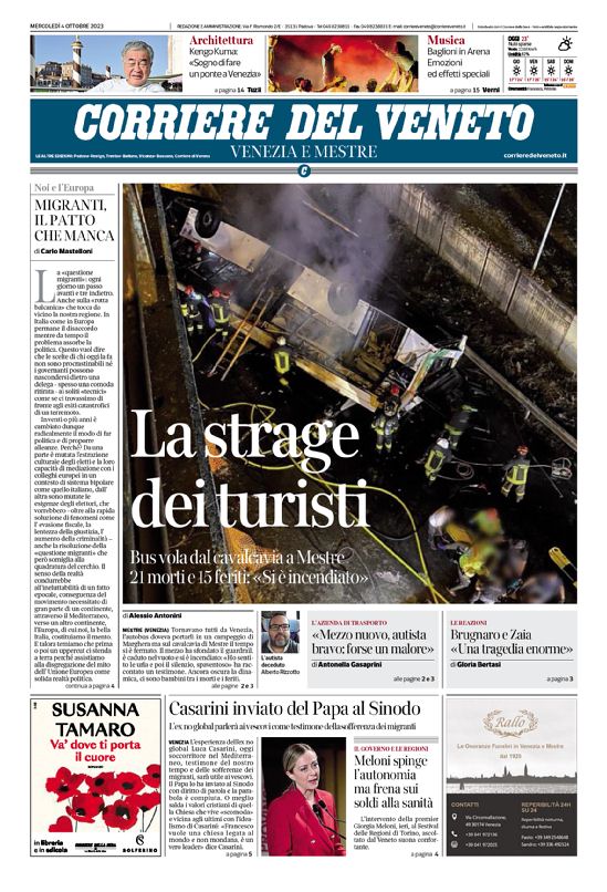 - Corriere del Veneto e Corriere della Sera: image PrimaPagina CorVeneto04 10 2023(122 KB) , pdf PrimaPagina CorSera04 10 2023(1.26 MB) , pdf Intv Zaia Corsera04 09 2023(313 KB)
