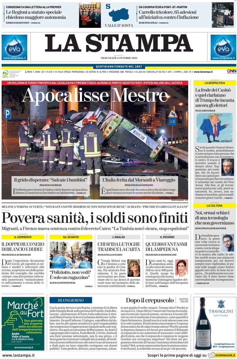 - La Stampa: image PrimaPagina LaStampa04 10 2023(265 KB)