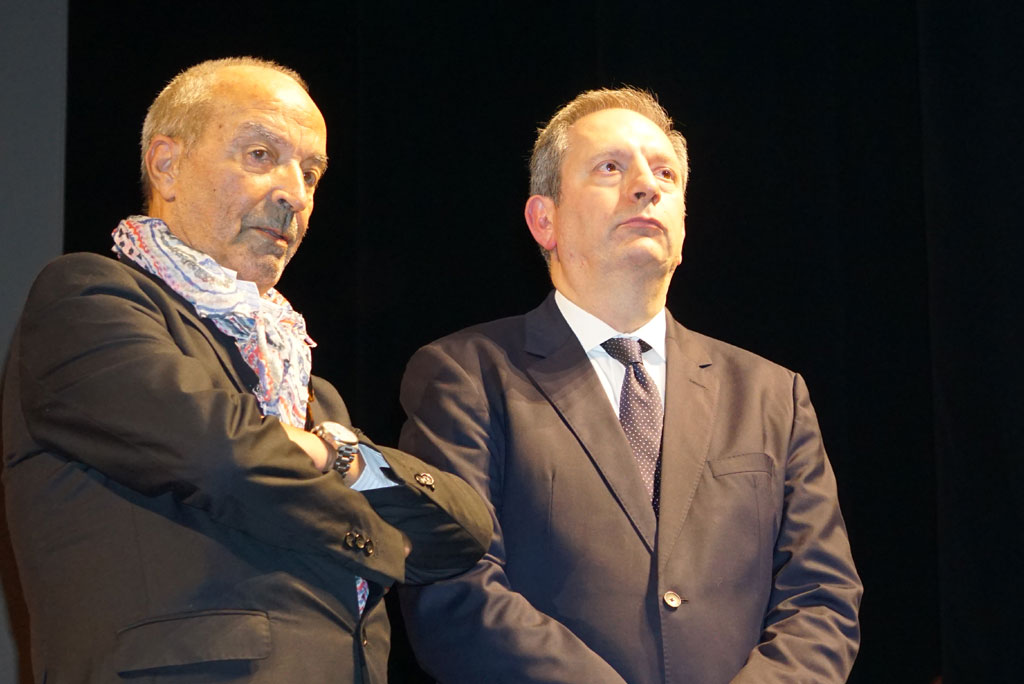 Il dottor Dell'Olivo con il presidente Giovanni Leoni il 21 ottobre 2017 sul palco del Teatro Goldoni per la Giornata del Medico e dell'Odontoiatra.